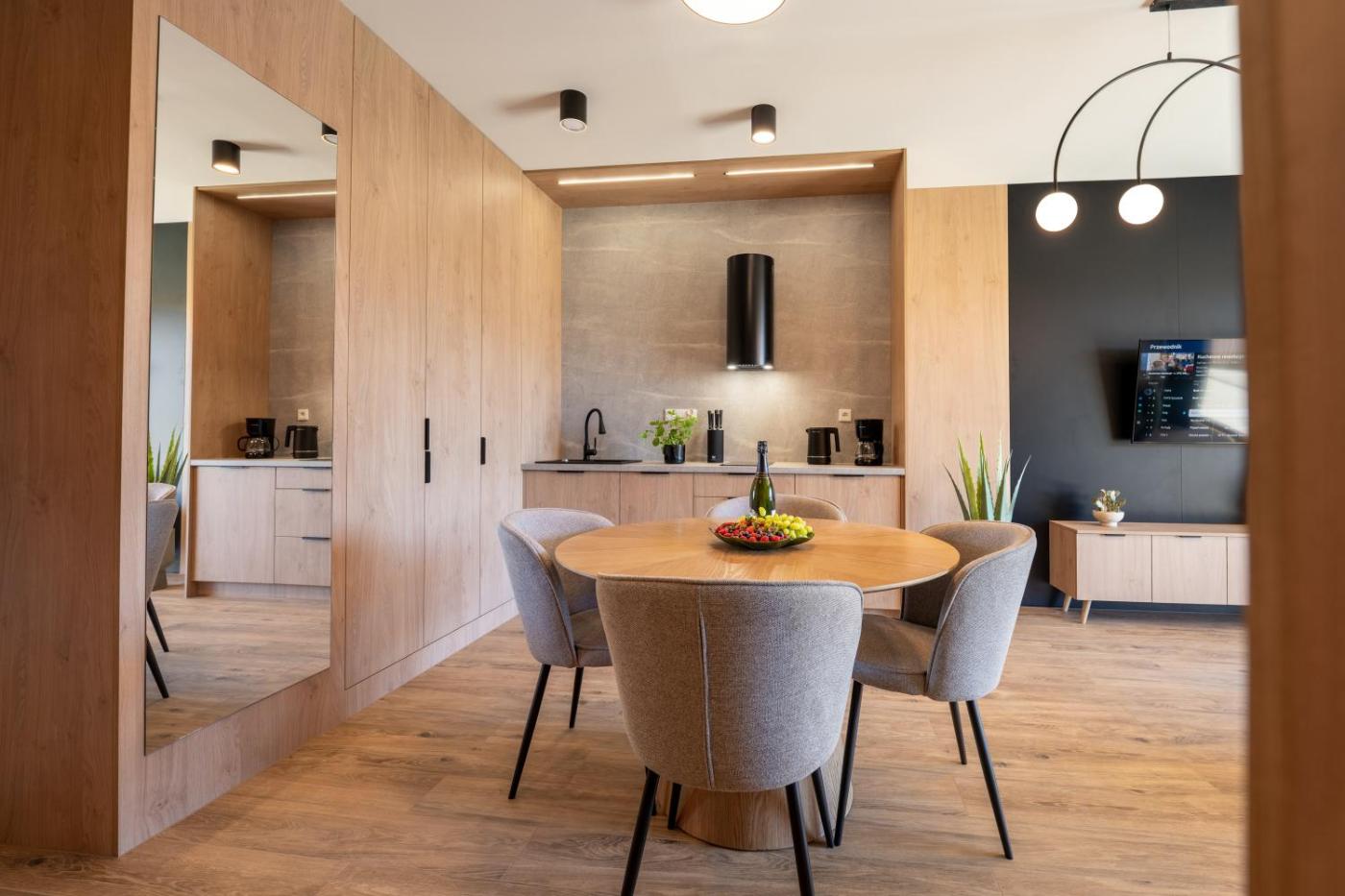 Apartament z 1 sypialnią. Featuring a private entrance, this apartment consists of 1 living room, 1 separate bedroom and 1 bathroom with a shower and a hairdryer. Guests can make meals in the kitchenette that is equipped with a stovetop, a refrigerator, a dishwasher and kitchenware. This wheelchair accessible apartment features soundproof walls, a seating area with a flat-screen TV and a roll-in shower. The unit offers 2 beds. Powierzchnia pokoju ok.: 50 mkw. ;
